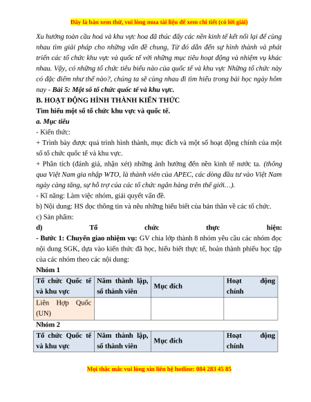 Giáo án Bài 5 Địa lí 11 Chân trời sáng tạo (2024): Một số tổ chức quốc tế và khu vực