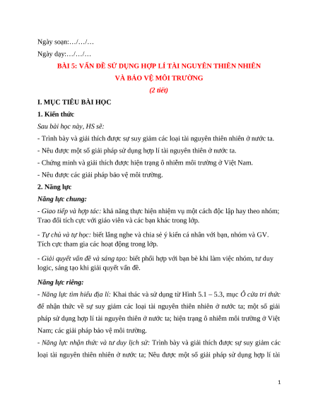 Giáo án Bài 5 Địa lí 12 Chân trời sáng tạo (2024): Vấn đề sử dụng hợp lí tài nguyên thiên nhiên