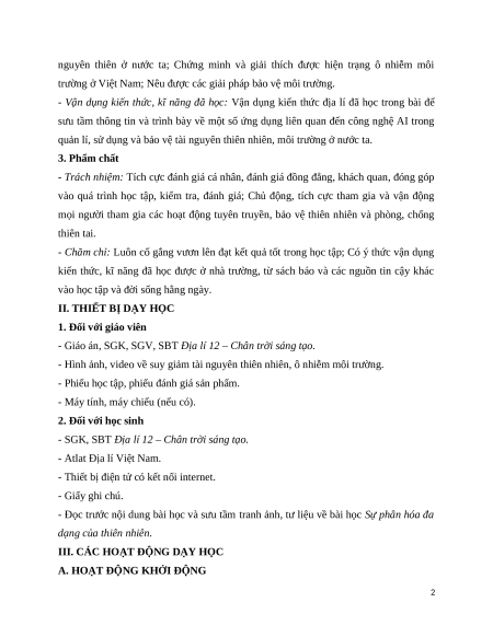 quản lí, sử dụng và bảo vệ tài nguyên thiên nhiên, môi trường ở nước ta. 3. Phẩm chất