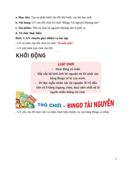 b. Nội dung: GV cho HS chơi trò chơi “Bingo Tài nguyên khoáng sản”.
