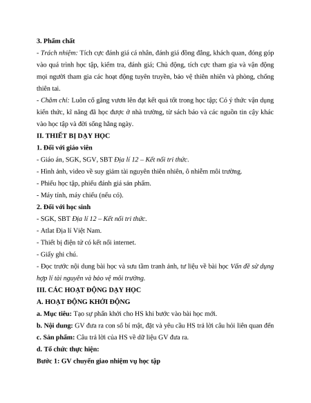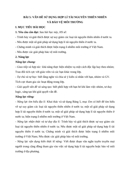 Giáo án Bài 5 Địa lí 12 Kết nối tri thức (2024): Vấn đề sử dụng hợp lí tài nguyên thiên nhiên
