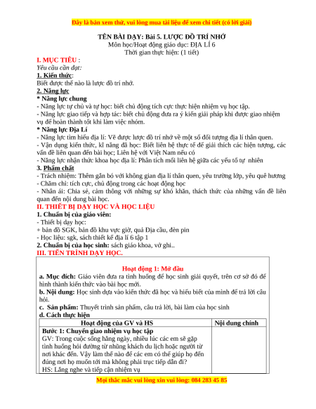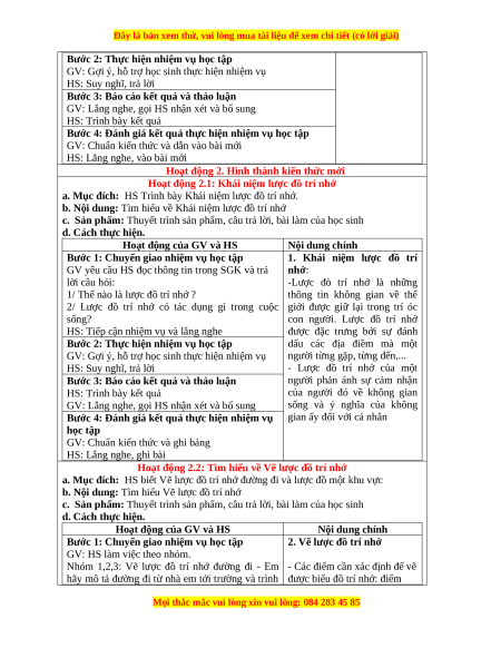Giáo án Bài 5 Địa lí 6 Kết nối tri thức (2024): Lược đồ trí nhớ