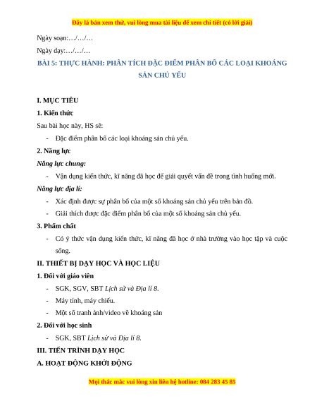 BÀI 5: THỰC HÀNH: PHÂN TÍCH ĐẶC ĐIỂM PHÂN BỐ CÁC LOẠI KHOÁNG SẢN CHỦ YẾU I. MỤC TIÊU 1. Kiến thức Sau bài học này, HS sẽ: