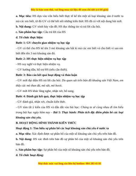 a. Mục tiêu: Giải thích được đặc điểm phân bố của một số khoáng sản chủ yếu