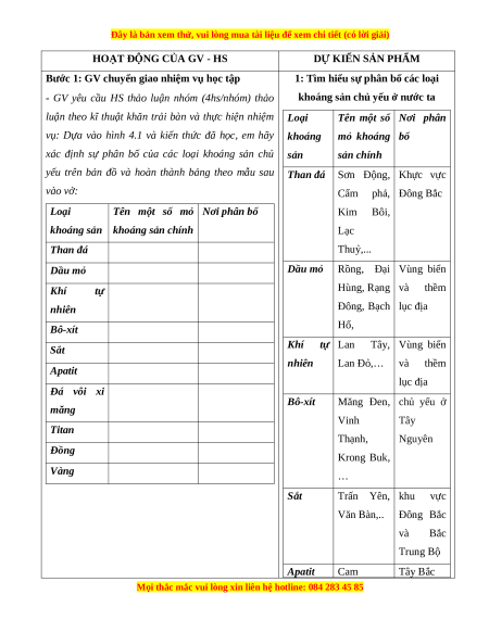 b. Nội dung: HS giải thích được đặc điểm phân bố của một số khoáng sản chủ yếu