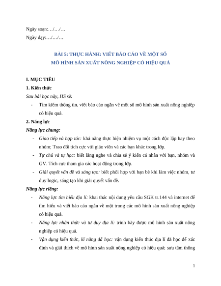 Tìm kiếm thông tin, viết báo cáo ngắn về một số mô hình sản xuất nông nghiệp có hiệu quả. 2. Năng lực