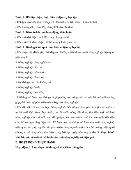 tin từ các nguồn khác nhau để tìm hiểu mô hình sản xuất nông nghiệp có hiệu quả. 3. Phẩm chất -