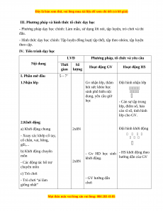 - Phương pháp dạy học chính: Làm mẫu, sử dụng lời nói, tập luyện, trò chơi và thi