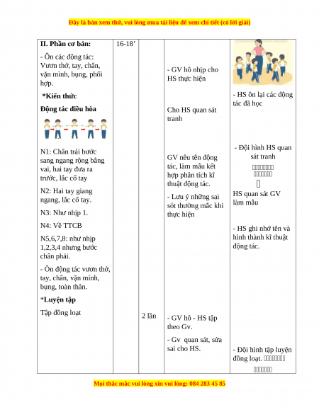 - NL vận động cơ bản: Thuộc tên động tác và thực hiện được các động tác vươn