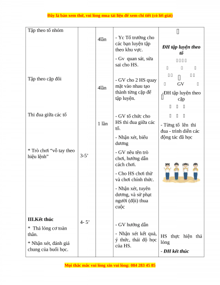 - Hình thức dạy học chính: Tập luyện đồng loạt( tập thể), tập theo nhóm, tập luyện theo cặp.