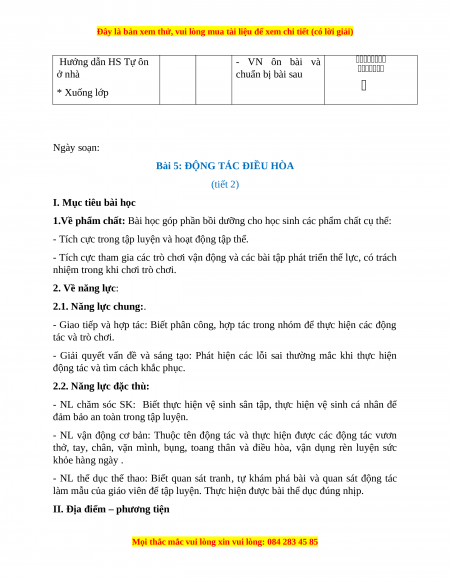 Bài 5: ĐỘNG TÁC ĐIỀU HÒA (tiết 1)