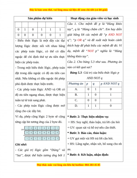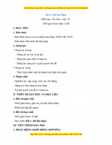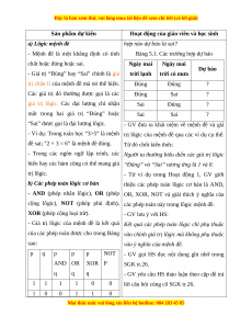 - Biết được giá trị và các phép toán lôgic AND, OR, NOT.