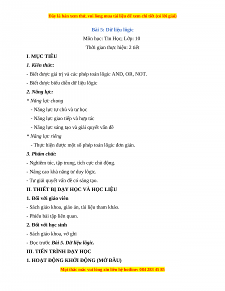 - Đọc trước Bài 5. Dữ liệu lôgic.