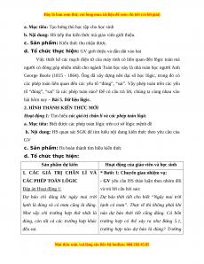 a. Mục tiêu: Biết được các phép toán lôgic trên cơ sở lôgic mệnh đề