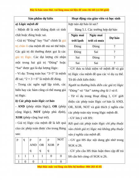 - Thực hiện được một số phép toán lôgic đơn giản.