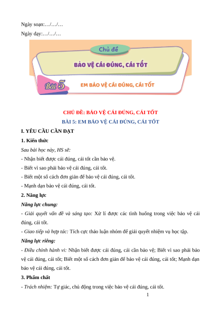 BÀI 5: EM BẢO VỆ CÁI ĐÚNG, CÁI TỐT