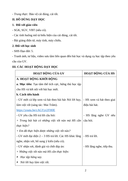 - Trung thực: Bảo vệ cái đúng, cái tốt.