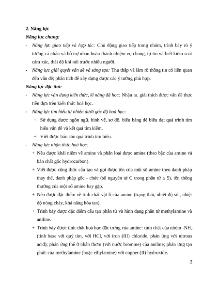 phương pháp điều chế amine (khử hợp chất nitro và thế nguyên tử H trong phân tử ammonia). 1 2. Năng lực