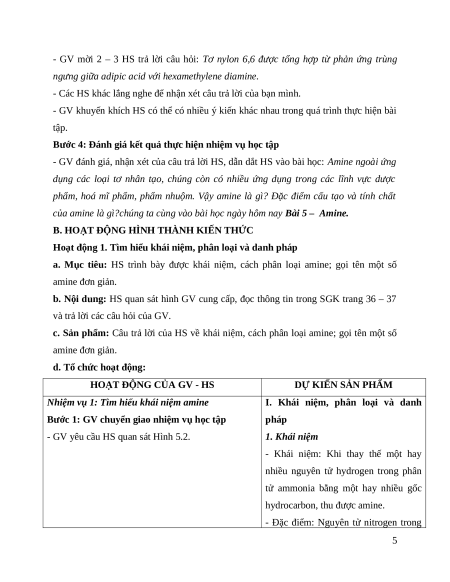 Giáo án Bài 5 Hóa học 12 Cánh Diều: Amine