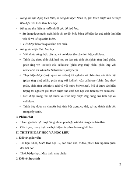 - Trình bày được ứng dụng của tinh bột và cellulose. 2. Năng lực