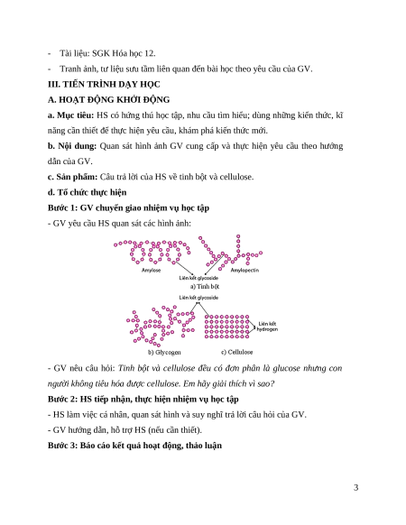 Giáo án Bài 5 Hóa học 12 Chân trời sáng tạo: Tinh bột và cellulose