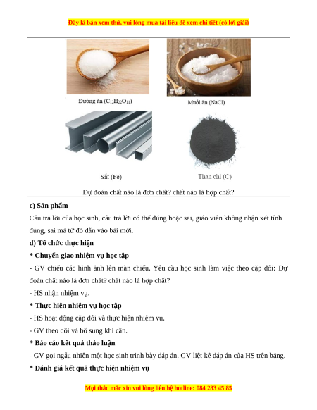 Dự đoán chất nào là đơn chất? chất nào là hợp chất? c) Sản phẩm