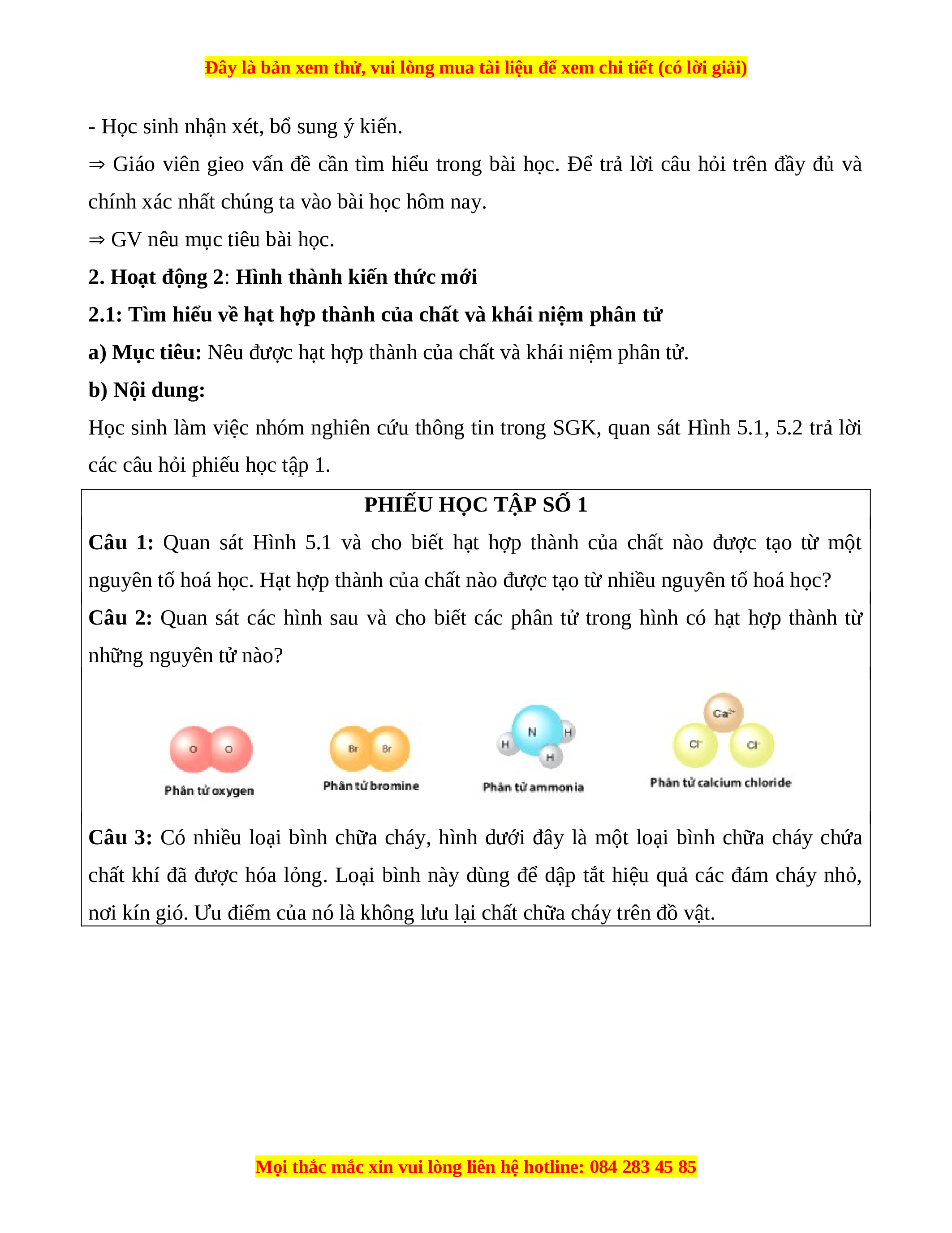 2.1: Tìm hiểu về hạt hợp thành của chất và khái niệm phân tử