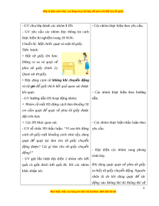 và từ gió để gi i ả thích k t ế qu ả quan sát đ c ượ khi qu t ạ . - Các nhóm th c ự hi n ệ theo h n ướ g - GV h n ướ g d n ẫ HS ho t ạ đ n ộ g nhóm: dẫn. + Nhóm cử m t ộ HS đ n ứ g cách bàn kho n ả g 50 cm c m ầ qu t ạ để qu t