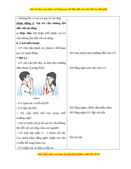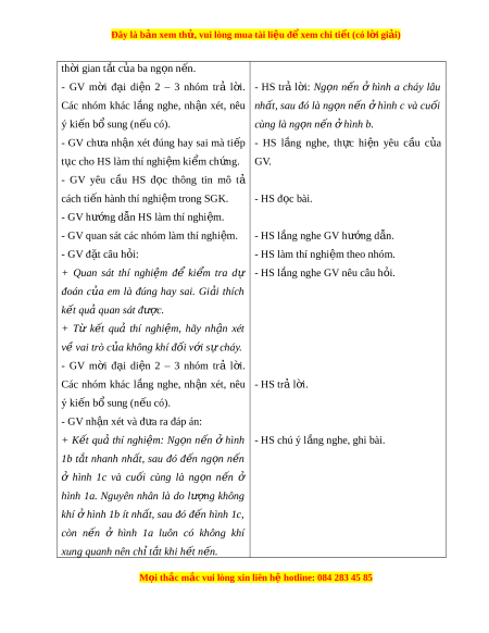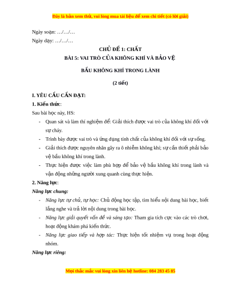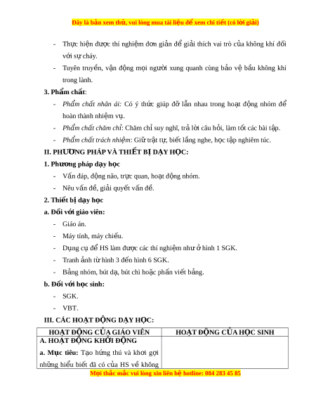 ệ đ xe ể m chi ti t (c ế ó lời gi i ả ) - Th c ự hi n ệ đ c ượ thí nghi m ệ đ n ơ gi n ả để gi i ả thích vai trò c a ủ không khí đ i ố v i ớ s ự cháy. - Tuyên truy n ề , v n ậ đ n ộ g m i ọ ng i ườ xung quanh cùng b o ả vệ b u ầ không khí trong lành. 3. Phẩm ch t ấ : - Phẩm ch t