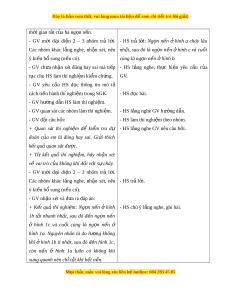 ậ xét đúng hay sai mà ti p ế - HS l n ắ g nghe, th c ự hi n ệ yêu c u ầ c a ủ t c ụ cho HS làm thí nghi m ệ ki m ể ch n ứ g. GV. - GV yêu c u ầ HS đ c ọ thông tin mô tả cách ti n ế hành thí nghi m ệ trong SGK. - HS đ c ọ bài. - GV h n ướ g d n ẫ HS làm thí nghi m. ệ