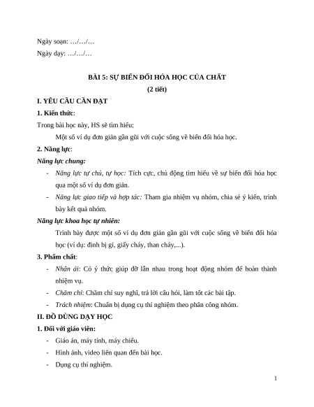 Một số ví dụ đơn giản gần gũi với cuộc sống về biến đổi hóa học. 2. Năng lực: