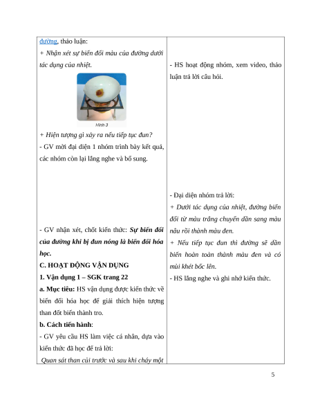 Giáo án Bài 5 Khoa học lớp 5 Kết nối tri thức: Sự biến đổi hoá học của chất