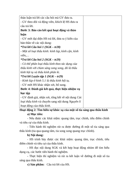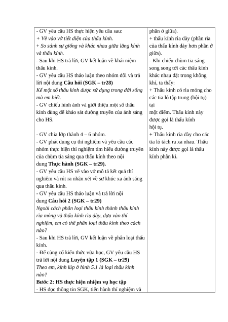 Giáo án Bài 5 KHTN 9 Cánh diều (2024): Sự khúc xạ ánh sáng qua thấu kính