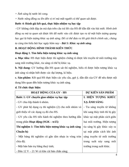 - Năng lực giải quyết vấn đề: Xác định và phân tích được thí nghiệm khúc xạ ánh