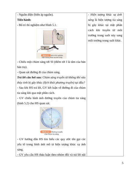 Giáo án Bài 5 KHTN 9 Kết nối tri thức (2024): Khúc xạ ánh sáng