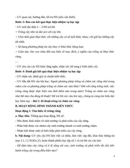 hiểu về các biện pháp kĩ thuật trồng và chăm sóc rừng. 3. Phẩm chất