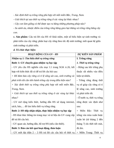 - Giải thích được việc bố trí thời vụ trồng rừng.