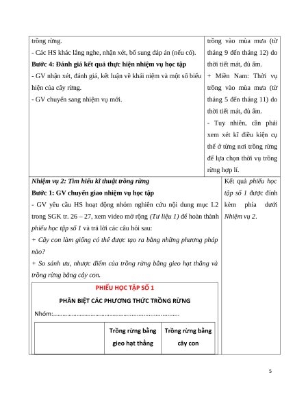 Giáo án Bài 5: Kĩ thuật trồng và chăm sóc rừng Công nghệ Lâm nghiệp Thủy sản 12 Kết nối tri thức