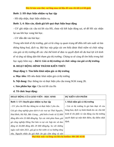 Giáo án Bài 5 KTPL 10 Chân trời sáng tạo: Giá cả thị trường và chức năng của giá cả