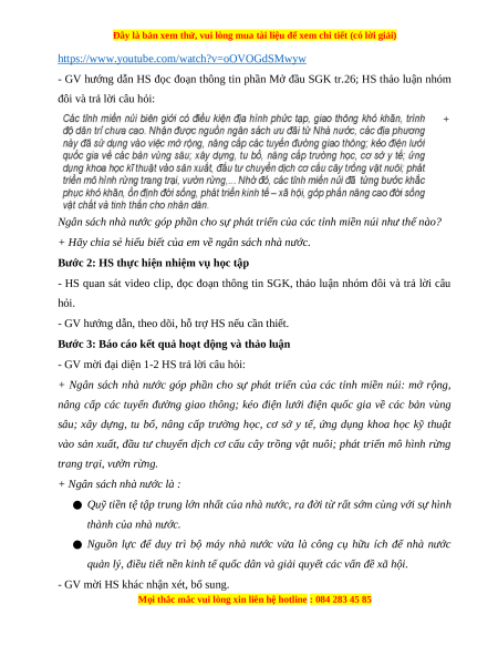 - Câu trả lời của HS về ngân sách nhà nước cho sự phát triển các tỉnh miền núi (trong đoạn thông tin SGK).