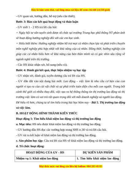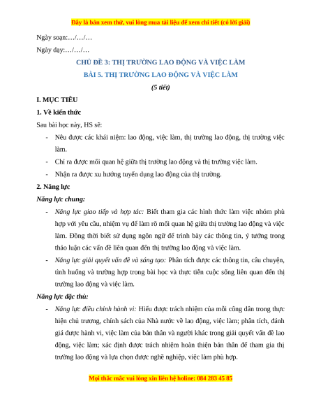 BÀI 5. THỊ TRƯỜNG LAO ĐỘNG VÀ VIỆC LÀM (5 tiết) I. MỤC TIÊU 1. Về kiến thức Sau bài học này, HS sẽ: