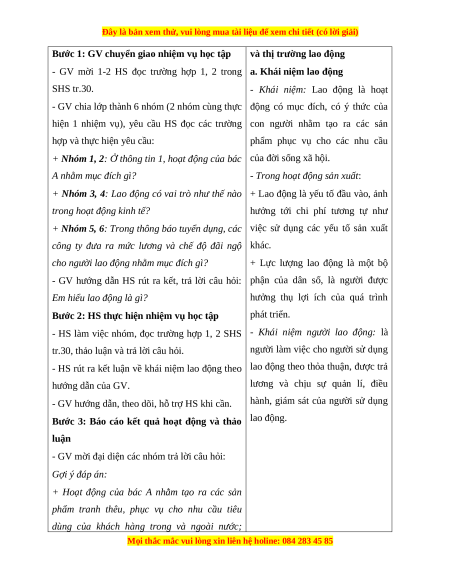 Hoạt động 1: Tìm hiểu khái niệm lao động và thị trường lao động