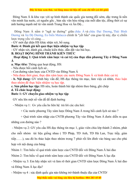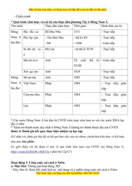 Đây là bản xem thử, vui lòng mua tài liệu để xem chi tiết (có lời giải) Tên nước Thực dân xâm lược Thời gian Hình thức cai trị Đông Ma –lắc- ca Nam Á Phi–lip- pin