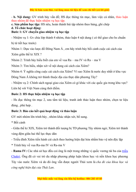 - Nêu, làm rõ được bối cảnh lịch sử , nội dung và ý nghĩa công cuộc cải cách ở Xiêm