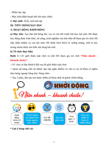 A. HOẠT ĐỘNG KHỞI ĐỘNG