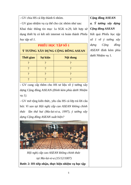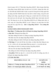 BÀI 5: CỘNG ĐỒNG ASEAN: TỪ Ý TƯỞNG ĐẾN HIỆN THỰC (2 TIẾT) I. MỤC TIÊU 1. Kiến thức