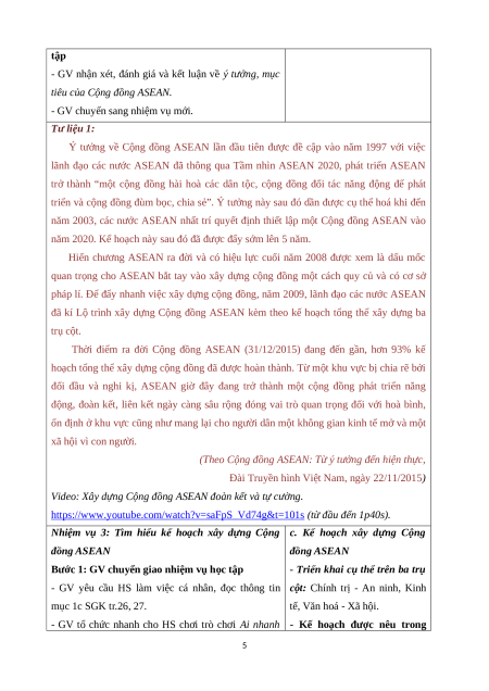 BÀI 5: CỘNG ĐỒNG ASEAN: TỪ Ý TƯỞNG ĐẾN HIỆN THỰC (2 TIẾT) I. MỤC TIÊU 1. Kiến thức