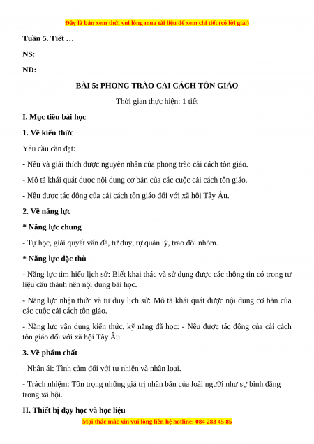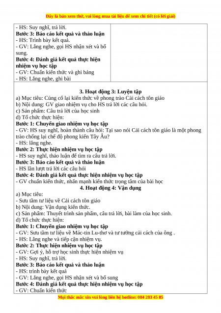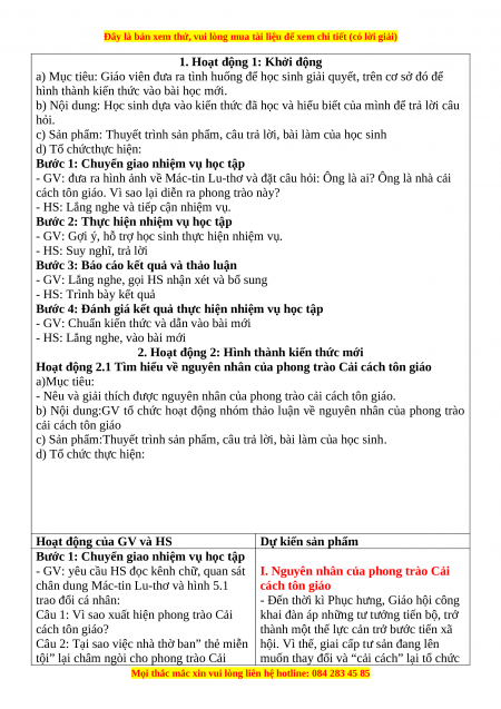 Giáo án Bài 5 Lịch sử 7 Chân trời sáng tạo (2024): Phong trào cải cách tôn giáo