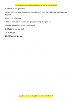 - Giáo viên biên soạn theo định hướng phát triển năng lực, phiếu học tập dành cho học sinh. - Máy tính, máy chiếu.