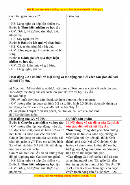 Hoạt động 2.2 Tìm hiểu về Nội dung và tác động của Cải cách tôn giáo đối với xã hội Tây Âu.